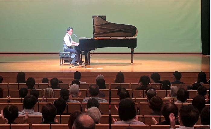 一流の演奏を地域の身近な施設で楽しむことができる「地域コンサート」、今回のアーティスト小林真人さんは昨年に続き2回目の公演です。昨年好評を博したコンサートが再び実現するとあって、会場は昨年に続いて来場した方や、市内の小学校などで開かれた「クラスコンサート」をきっかけに足を運んだ親子連れなどで賑わい、開演前から期待に包まれました。