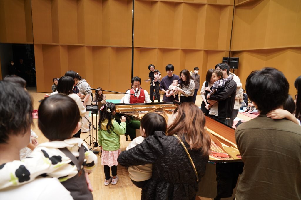 1部と2部通しで参加する家族も多く、会場は終演まで子どもたちの歌声と笑顔に包まれていました。終演後のアンケートには「希望ホールのステージ上という貴重な体験と、ピアノの近くで音に触れる事ができ、家族皆本当に楽しかったです!」「2歳にはまだ早い?と心配しながらの参加でしたが伸び伸び楽しめて「たのしかった!」と子供達がニコニコで帰れて嬉しかったです」などの声が寄せられました。