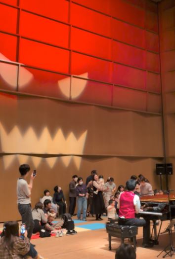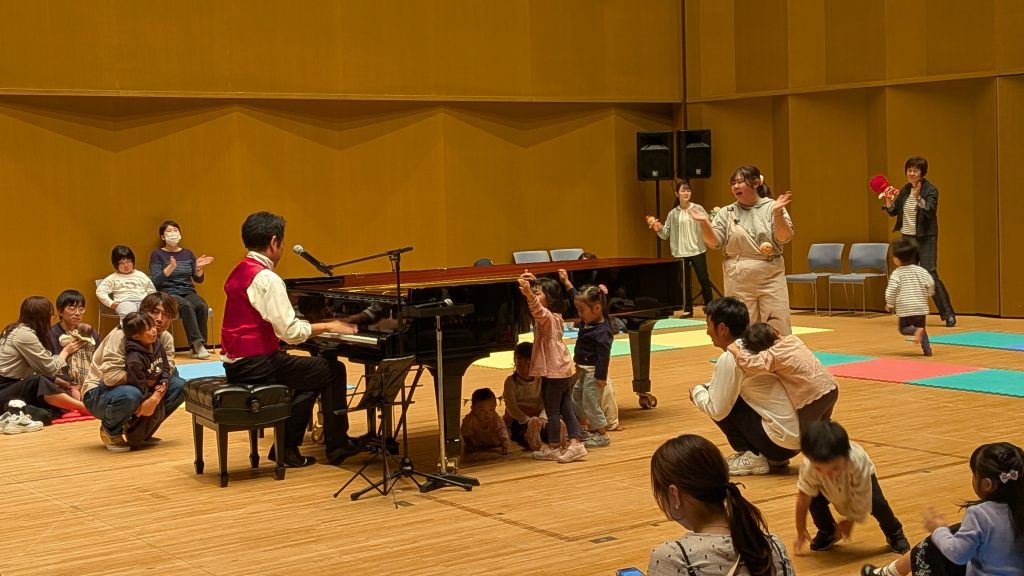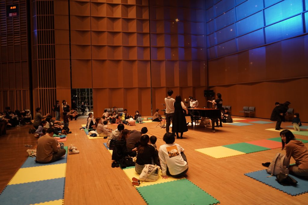 子どもたちが夢中になる参加型コーナーだけでなく、保護者の方向けに演奏に聴き入る時間も設けられ、お子様と一緒にリラックスして耳を傾ける姿も見られました。