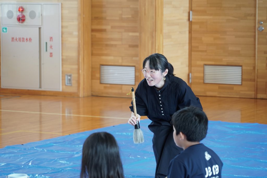 10月8日(水)に書道家の點 Ten(てん)さんが新堀小学校を訪問し、5,6年生の複式学級を対象に書道のワークショップを行いました。